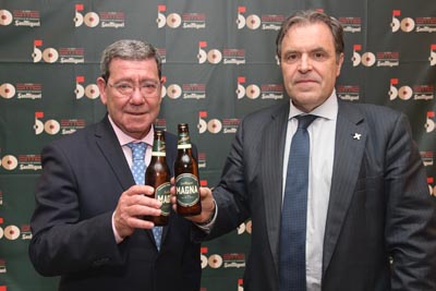 César Rico,presidente de la Diputación de Burgos y Alberto Velasco,director de Relaciones Institucionales de Mahou San Miguel, han sido los encargos de rubricar esta colaboración, gracias a la cual Cervezas San Miguel estará presente en todos los eventos de carácter nacional e internacional que organice Burgos Alimenta.