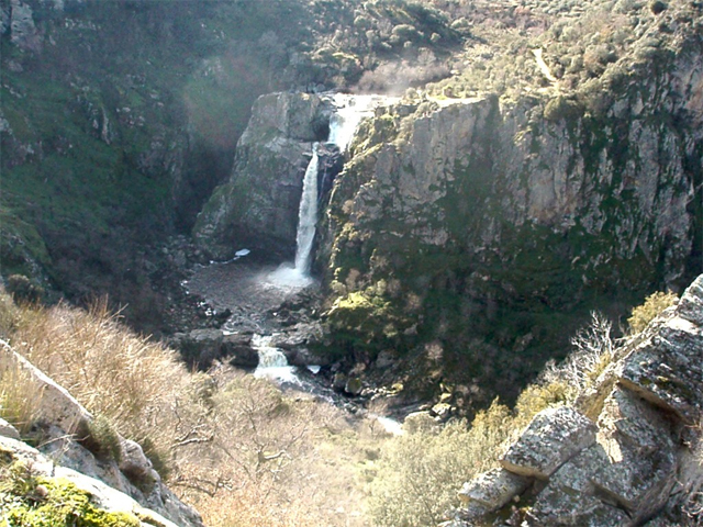 Maravillosa vista es contemplar la caída desde más de cincuenta metros en vertical y en terreno rocoso del agua del afluente del Duero llamado el Uces, que se bifurca en este punto y da lugar a la creación por obra y gracia de la naturaleza de esta natural cascada (las cataratas de Niágara sólo la superan en dos metros ya que alcanzan los 52 metros) pudiéndose hacer una idea de la magnitud de este espectáculo que ni siquiera escapó a la atención de Miguel de Unamuno, que lo visitó quedando prendado de su belleza y plasmando la magnificencia con estas solemnes palabras “La caída de esas aguas es una de las más hermosas que pueden verse en aquellos adustos tajos“ rebautizándose a consecuencia de tal distinción y con el nombramiento municipal aquella senda por la de "la Senda de Unamuno" el cual tuvo que repetir visita a esta localidad de Masueco de la Ribera.